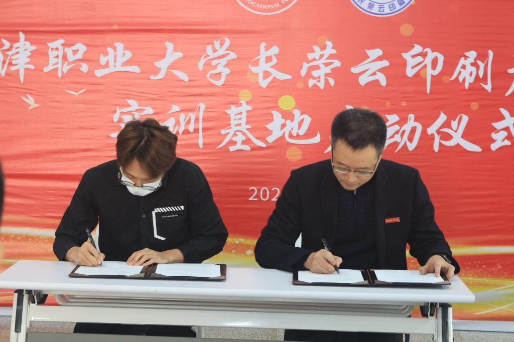 刘斌校长和董事长助理邱丞一起为KY开元集团官网入口长荣云印刷产教融合实训基地揭牌。