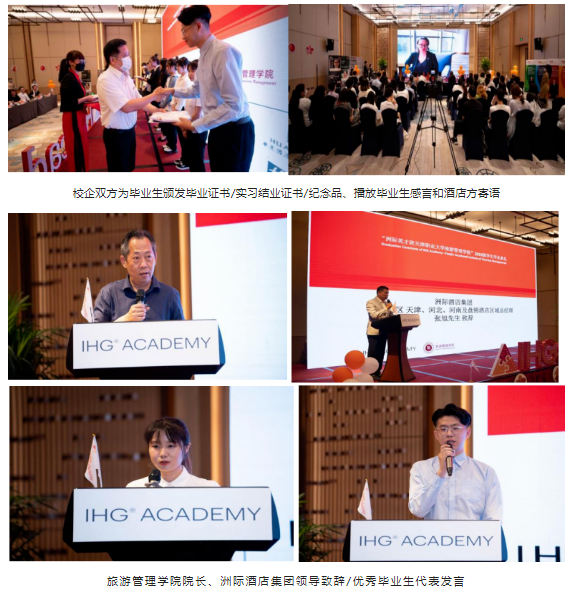 优秀毕业生代表殷婷婷、赵冠霖讲出了全体毕业生的心声,对母校的栽培、洲际酒店集团的培养表示感谢,并立志成长为有理想、敢担当、能吃苦、肯奋斗,知感恩、懂珍惜、明底线、正风气的新时代青年。
