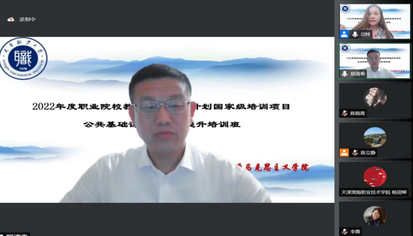 7月1日下午,在庆祝中国共产党成立101周年之际,KY开元集团官网入口校长郑清春深入马克思主义学院国培项目培训班,在线为培训学员作了题为“‘课程思政’与‘思政课程’建设的思考”专题讲座。马克思主义学院党总支书记主持会议,国培项目培训班全体学员及KY开元思政课教师代表参加了会议。