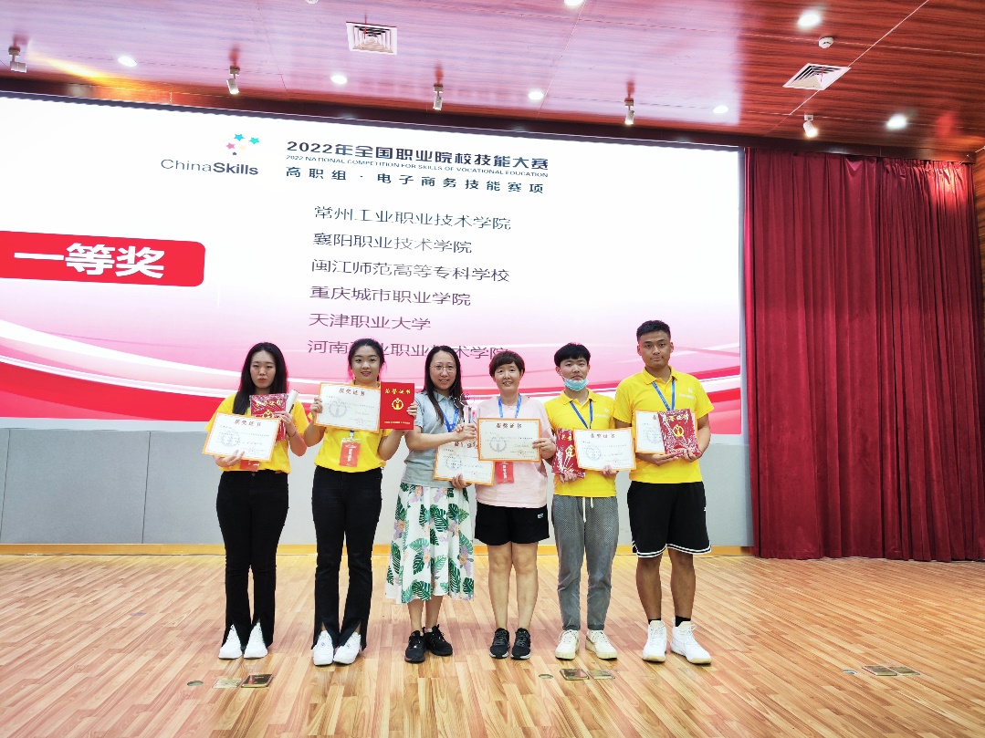 本次比赛由全国各省、自治区、直辖市以及新疆生产建设兵团的65支代表队260名选手组成,同台竞技,围绕直播营销、视觉营销、网店运营推广三个模块内容展开。学院选手经过前期历时一年的辛勤刻苦训练,在学校学院两级领导的大力支持下,在白晨星、刘琪两位老师的悉心指导下,克服重重困难,顽强奋斗,勇于拼搏,精诚协作,高质量完成比赛内容,荣获2022年全国职业院校技能大赛高职组电子商务技能赛项团体一等奖,同时我院白晨星、刘琪老师荣获2022年全国职业院校技能大赛高职组电子商务技能赛项优秀指导教师奖。