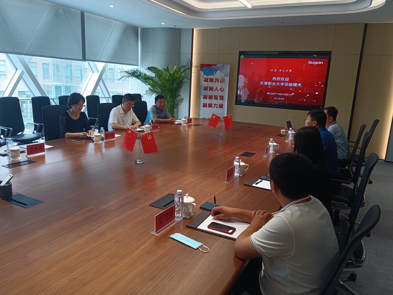 2022年8月26日,校党委副书记、校长郑清春带领电信学院负责人及骨干教师一行4人应邀到访中科曙光及360政企安全集团天津公司,并与企业高管及技术人员共同谋划以高质量产教融合,支持我市信息产业生态建设。