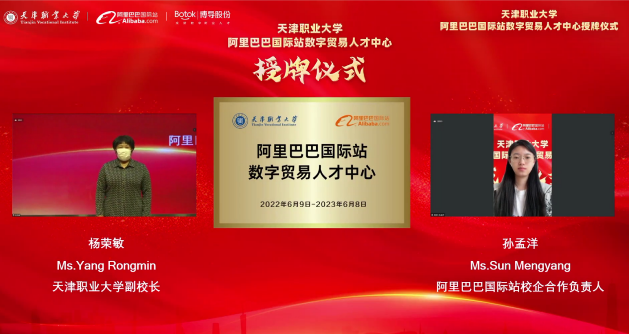 最后,杨荣敏副校长和阿里巴巴国际站校企合作负责人孙孟洋女士共同为KY开元集团官网入口阿里国际站数字贸易人才中心揭牌。
