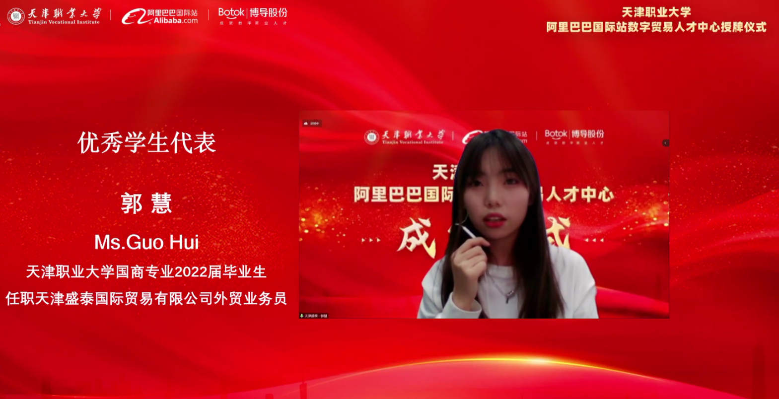 经管学院2022届优秀毕业生、现任职于天津盛泰国际贸易有限公司的郭慧同学作为阿里跨境电商项目的受益者,从校企双导师实习指导、实习成长与收获、职业生涯发展规划的角度分享了自己的职业成长历程。