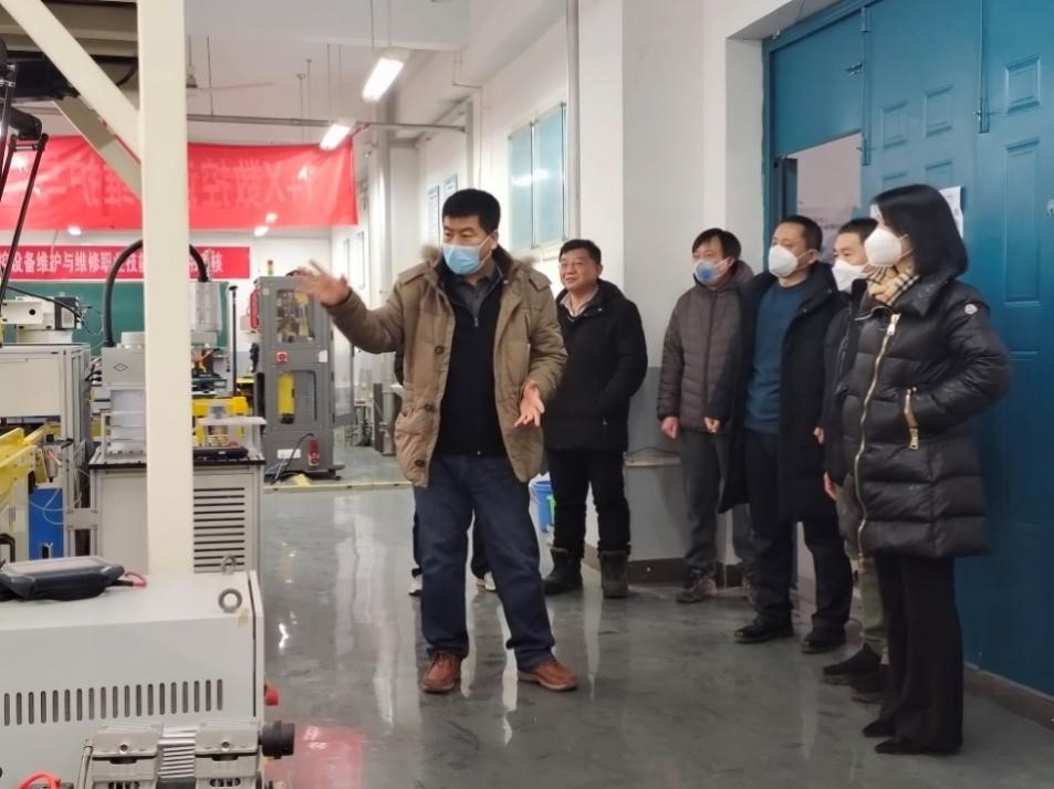座谈会后,通广集团一行参观了机电学院、电信学院的校内产教融合实训基地。