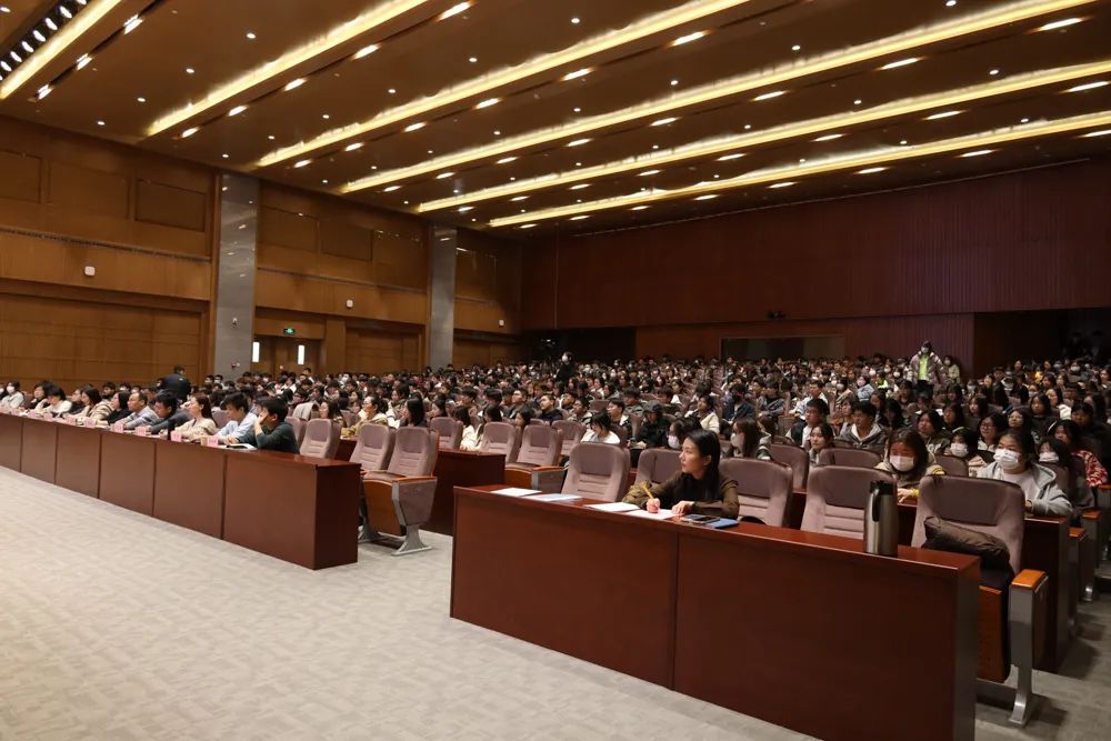 为贯彻落实习近平新时代中国特色社会主义思想,学习宣传贯彻党的二十大精神,弘扬伟大建党精神,进一步引导广大学生感悟党的伟大成就,厚植爱党、爱国、爱社会主义情怀。3月1日,校党委书记夏静波教授以《不负时代 不负华年 用奋斗书写最闪亮青春答卷》为题,面向学生讲授了一堂启迪智慧、沁润心灵的“开学第一课”。学工部相关负责人,各学院党委副书记、辅导员及学生代表500余人现场聆听讲座。