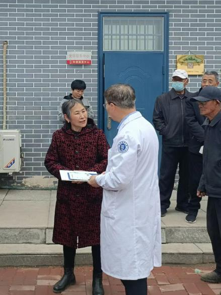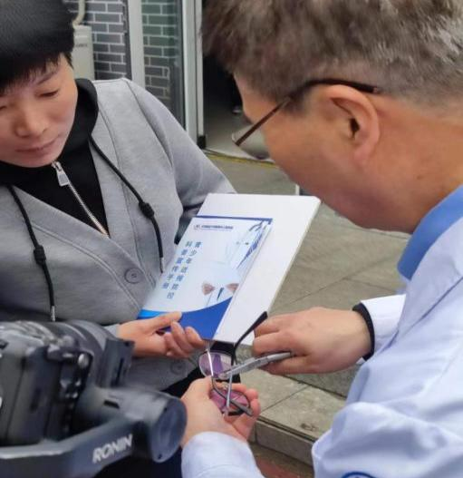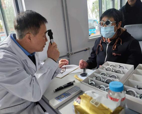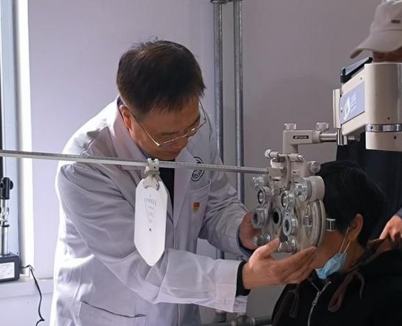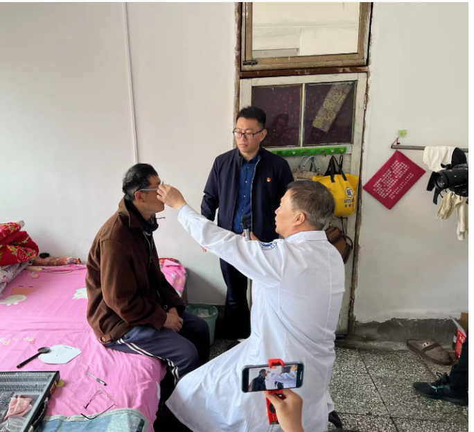 在服务点进行服务的同时,驻村工作队邀请王教授对行动不便的困难群众以及眼疾患者进行入户服务,运用视力表、检影镜等仪器对其进行视力检查,发放爱眼护眼宣传手册,向有需要的老年朋友赠送老花镜等。看到专业的验光数据以及手中的眼镜,老年人露出了开心与感激的笑容。王教授在与村民的交谈中受到了村民们的一致认可和感谢,王教授回应说到:“修桥补路治盲人,奉献光明是我们的责任。”
