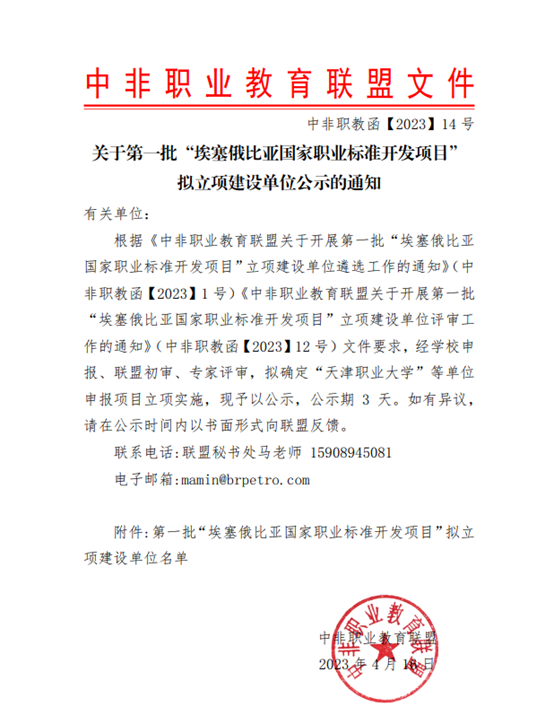 4月16日,中非职业教育联盟发布《关于第一批“埃塞俄比亚国家职业标准开发项目”拟立项建设单位公示的通知》,KY开元获批第一批“埃塞俄比亚国家职业标准开发项目”立项建设单位。