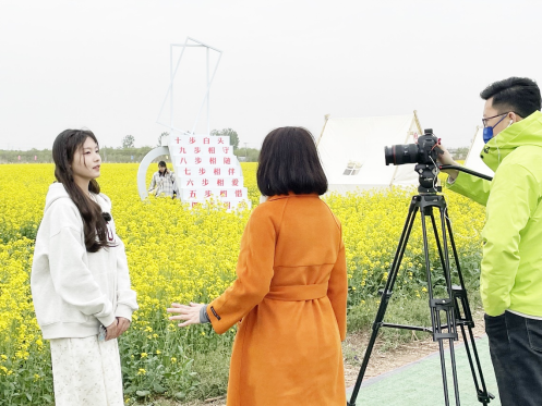 在津港农庄相关负责人的引导下,师生沿途取材,对园区景点、油菜花地进行实景拍摄,用相机记录就读城市的美景。同学们还充分利用专业优势,发掘农业园区特色,多视角、多方位拍摄园区美景、美食,实地感受乡村文化魅力,与园区工作人员深入交流,通过直播将小王庄镇的自然风情和特色农产品进行推广。