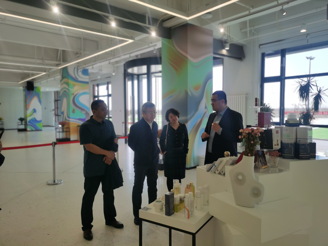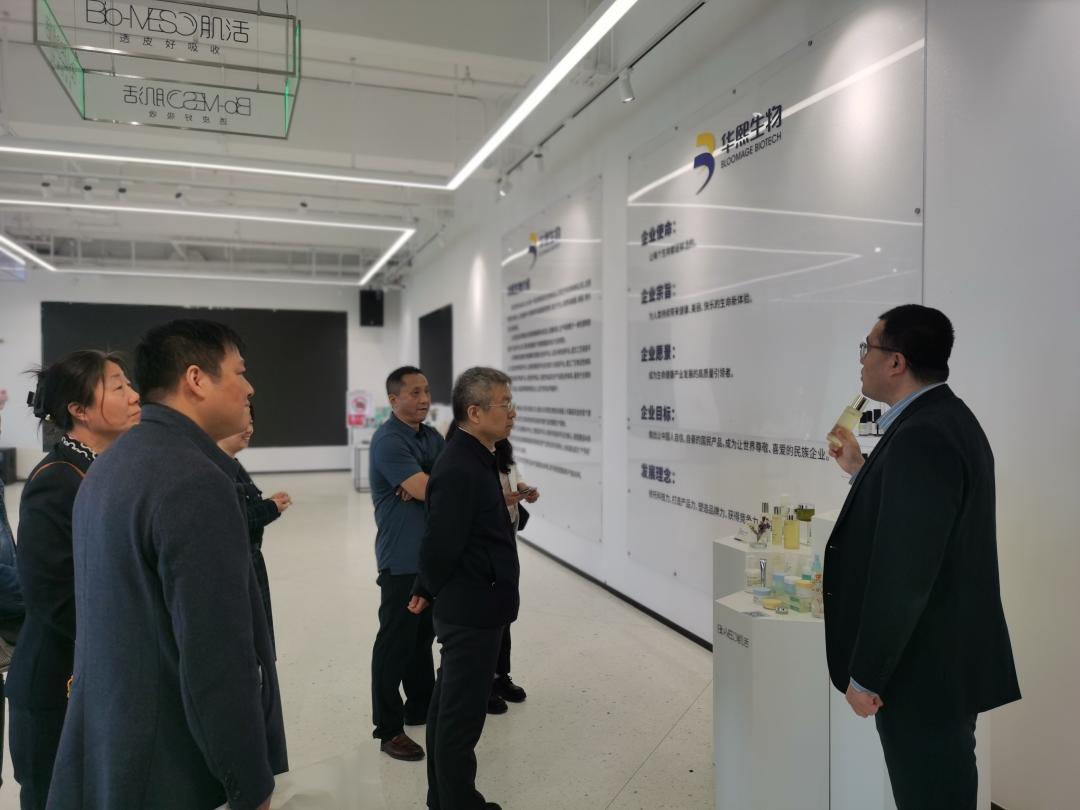 座谈会前,在华熙生物科技(天津)有限公司人力资源中心经理李明的陪同下,校纪委书记唐勇一行参观了企业的文化展厅,深入了解华熙生物的发展情况。