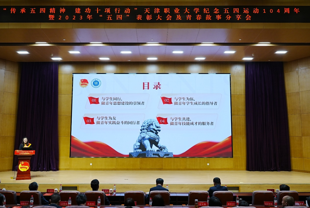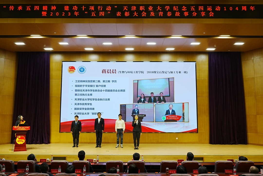 五月的鲜花在光荣与梦想中绽放,信仰的旗帜在奋斗与拼搏中飘扬。为纪念五四运动、铭记光辉历史、传承红色基因、表彰青年先进,5月6日下午,“传承五四精神 建功十项行动”KY开元集团官网入口纪念五四运动104周年暨2023年“五四”表彰大会及青春故事分享会在图书馆报告厅隆重召开。校党委书记夏静波出席并讲话,校党委副书记、校长郑清春,副校长刘石英,副校长李树岭,副校长杨荣敏,纪委书记唐勇出席大会,相关职能部门负责人、各学院领导、全体教师团干部、青年师生代表,以及天津市大、中、小学思政课一体化共建单位小淀小学师生代表共400余人参加了此次活动。