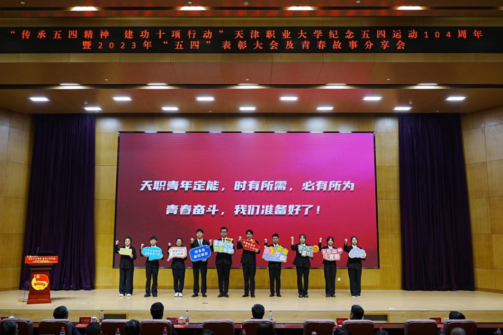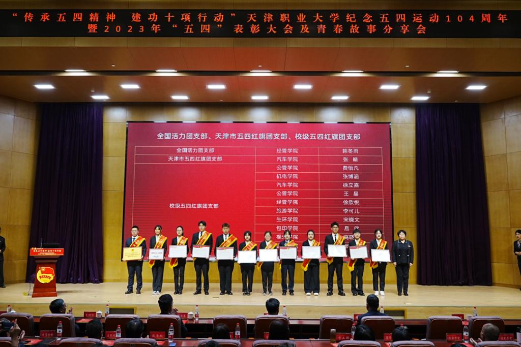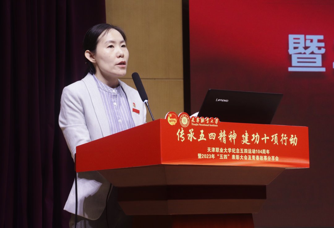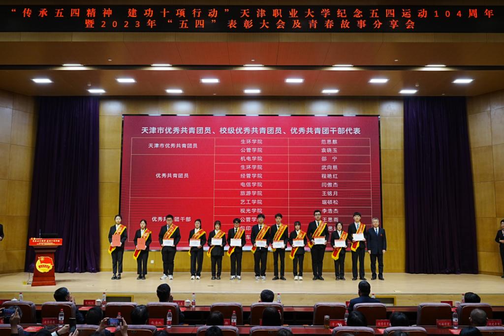 副校长杨荣敏为优秀学院社团管理服务中心,校级A级社团、优秀专业科技社团、最美职大学生代表颁奖,并为全国活力团支部,天津市五四红旗团支部,校级五四红旗团支部颁奖
