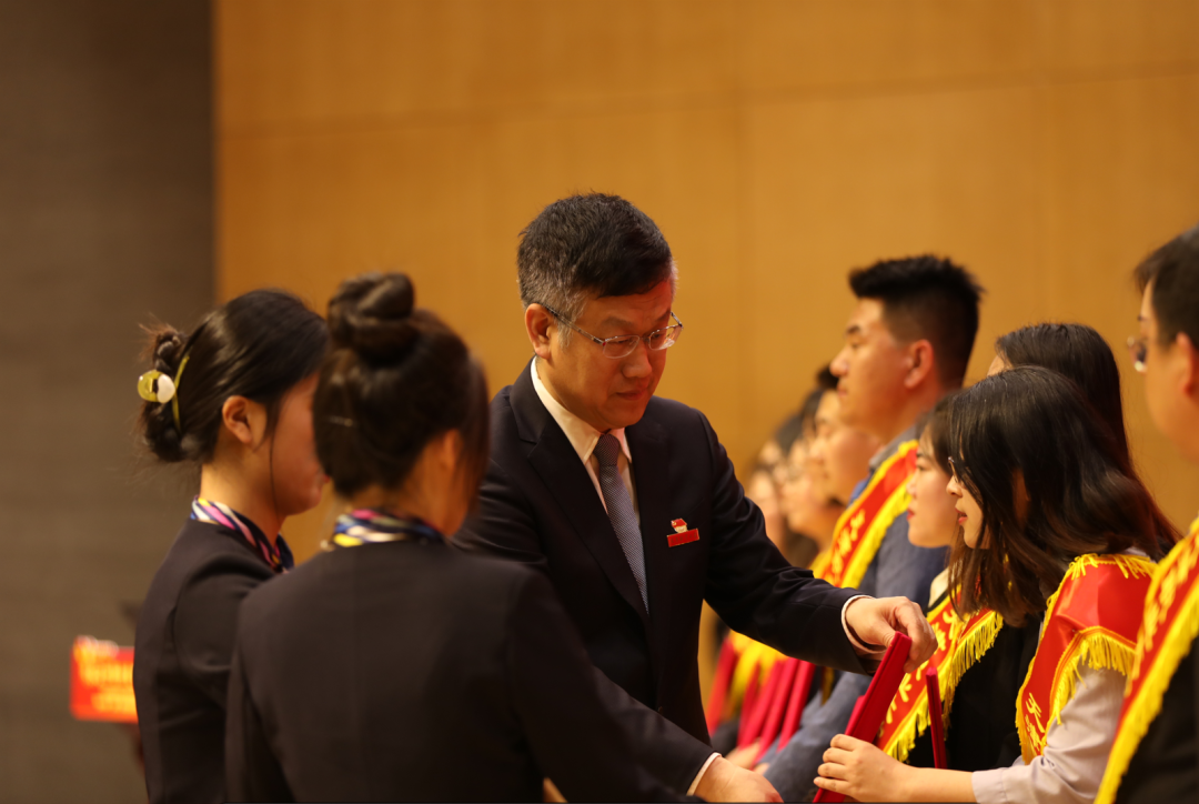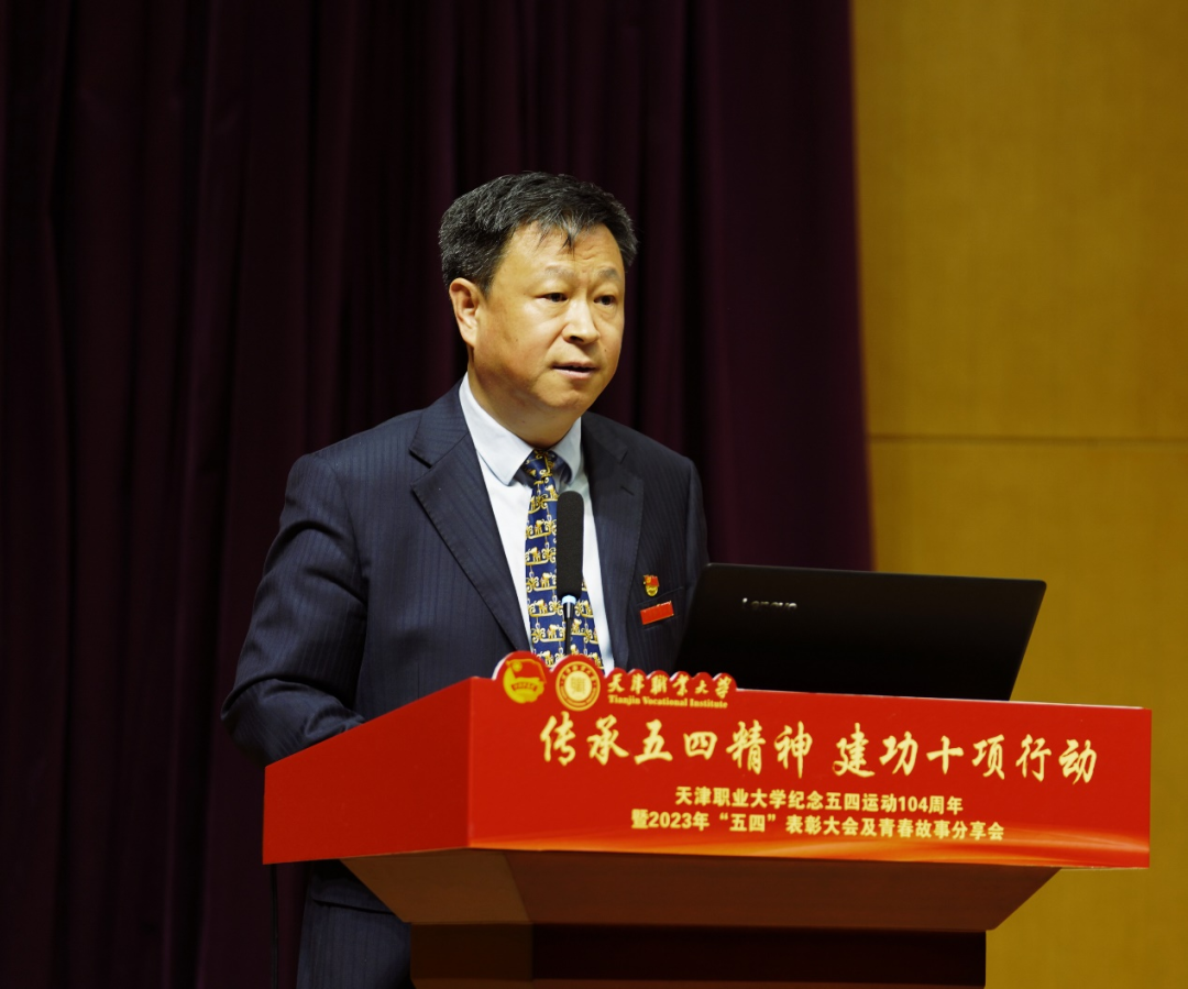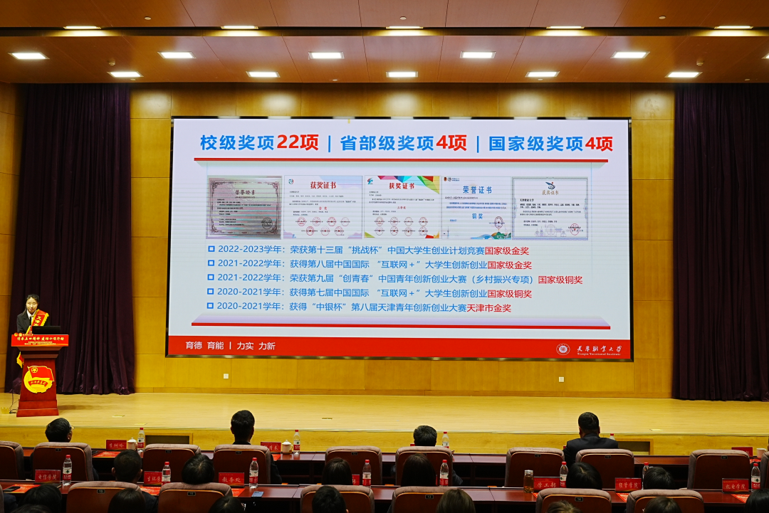 校党委副书记、校长郑清春为天津市优秀共青团干部,校级教工优秀团员、团干部代表,社团优秀指导教师代表颁奖