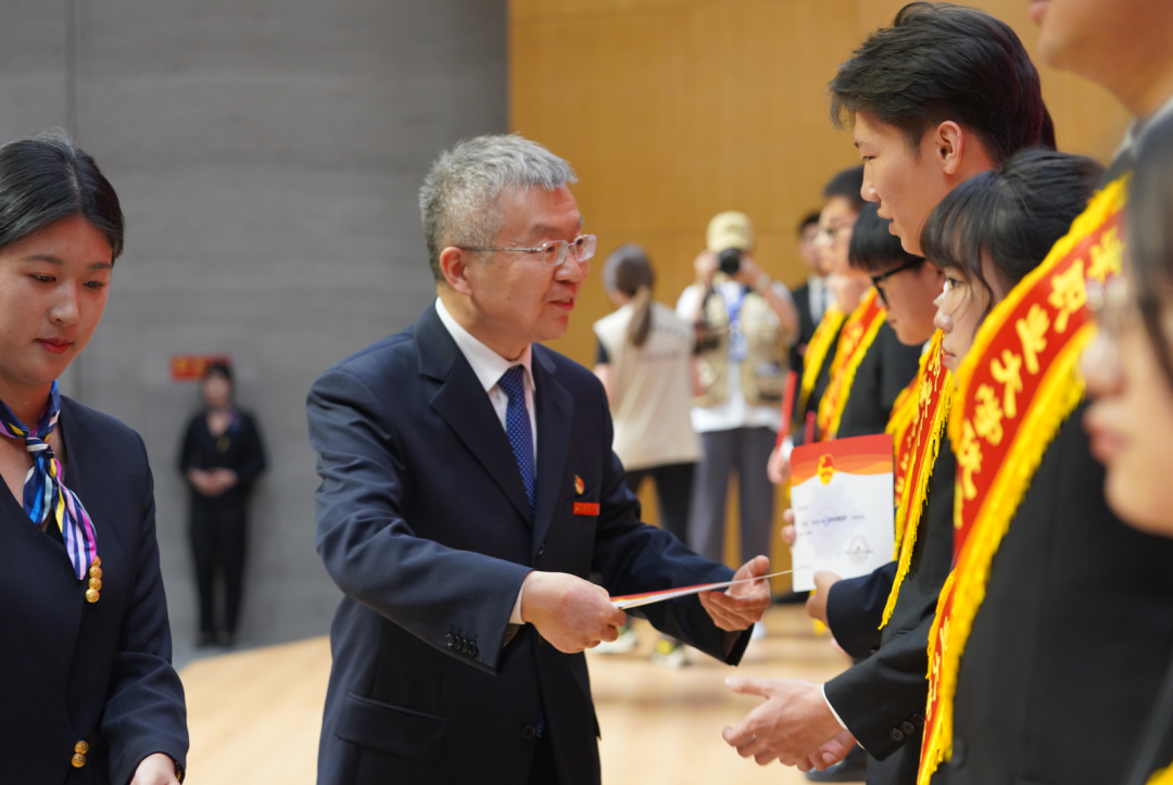 副校长李树岭为全国、市级“三下乡”暑期社会实践优秀团队、先进个人,第九届“创青春”中国青年创新创业大赛天津赛区赛,第十七届“振兴杯”全国青年职业技能大赛天津赛区赛职工组获奖者颁奖