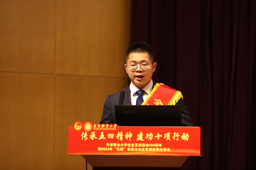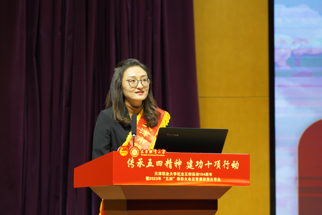 校级五四红旗团委、汽车学院团委书记孟洁做《致敬青春 践行使命》分享展示
