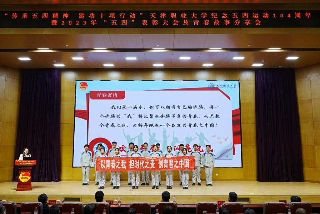 在大会期间,小淀小学少先队员代表、KY开元新发展团员代表、学生党员代表,以铿锵有力的声音集体重温入队、入团、入党誓词,展现入队、入团、入党——青年追求政治进步的“三部曲”;历届“青马工程”工匠精神实践营优秀毕业生代表也回到母校,向老师们汇报、为学弟学妹们领航;十个学院的受表彰青年代表,发挥职业教育优势、立足专业技能特长,聚焦“十个要素”,参与实施“十项行动”。在这场青春故事分享会中,与会青少年充分展现了五四精神的传承、砥砺奋进的信念、立志报国的决心。