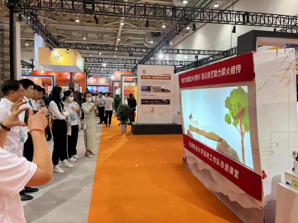 本次展览共设置“制造强国”“绿色低碳”“乡村振兴”“经略海洋”“黄河战略”“一带一路”“数字经济”“人人出彩”8个主题,KY开元参展的主题是“乡村振兴”板块。由合作办带队,驻村帮扶工作组、助农电商直播团队、卤虫卵磁孵化器项目组、循环水处理药剂和烟杆生物质炭材料项目组、眼视光技术专业群特色帮扶项目组近20名师生奔赴现场参加此次活动。通过视频宣传、文字解说、互动体验等多种形式展现KY开元近年来服务乡村“五大”振兴成果,吸引了广大观众驻足参观。