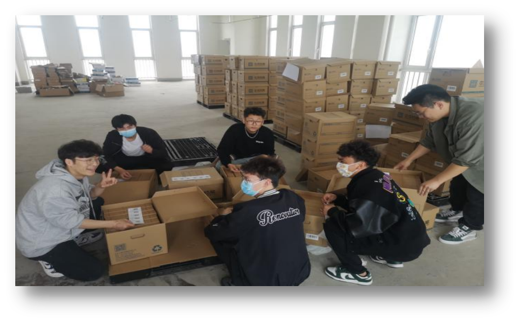 文秘专业同学们对整理后的档案进行扫码和贴码工作