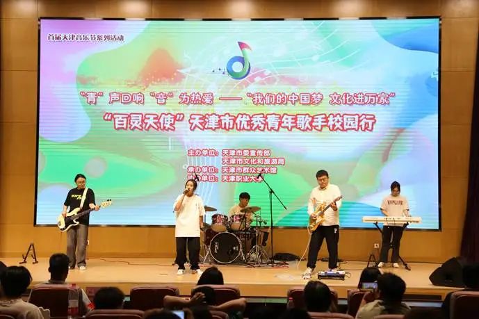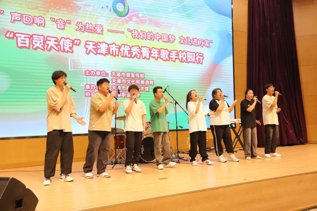 此次歌曲巡演力求“小而精”“鲜而活”的节目形式,除了来自天津市青年歌手大赛历届获奖歌手,KY开元校艺术团南寻乐队、校园十佳歌手等同学们也积极参与到演出当中,校艺术团22级南寻乐队带来《你要跳舞吗》作为开场,校园十佳歌手齐唱歌曲《东方之珠》,大家用灵动的舞台表现和真挚的情感,唱出了对祖国和人民的热爱,体现出拥抱美好生活的时代主旋律,也展示了青年们昂扬向上的精神风貌。