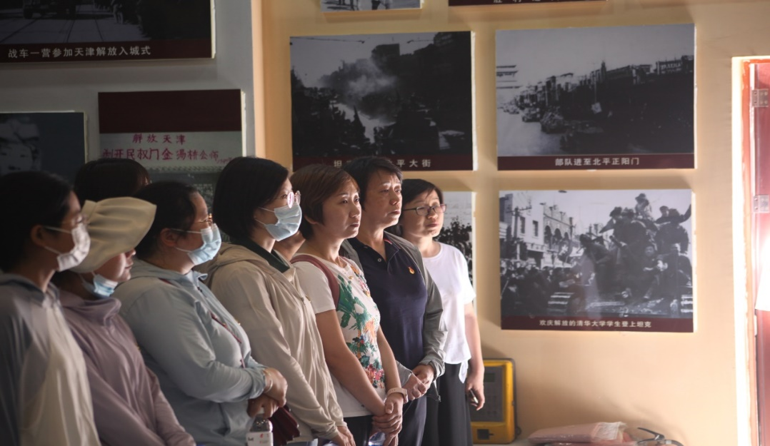 在坦克一团旧址国防教育基地,同志们在基地战士的带领下重走长征路、追忆战斗史,重温中国共产党的百年奋斗历程,回顾革命前辈的光荣事迹和辉煌岁月,感受当年的将士为民族、为国家浴血奋战、不怕牺牲的抗战精神。