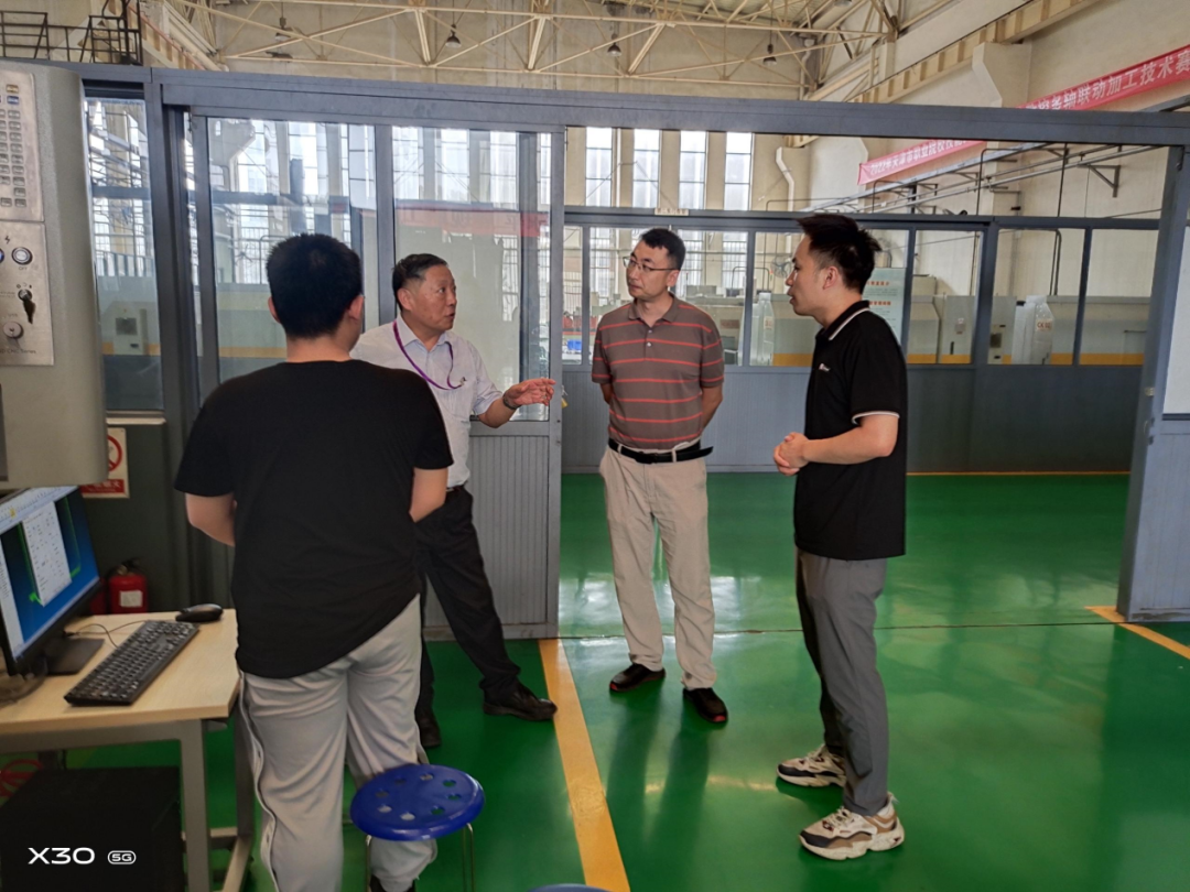 为深入开展学习贯彻习近平新时代中国特色社会主义思想主题教育,切实把习近平新时代中国特色社会主义思想转化为“服务师生”的实际行动,2023年7月3日下午,副校长李树岭一行走访校园深入学生,第一站来到了机械实训中心实训现场,看望备战全国职业院校技能大赛的集训学生、天津市职业院校技能大赛种子选手暑期集训学生。
