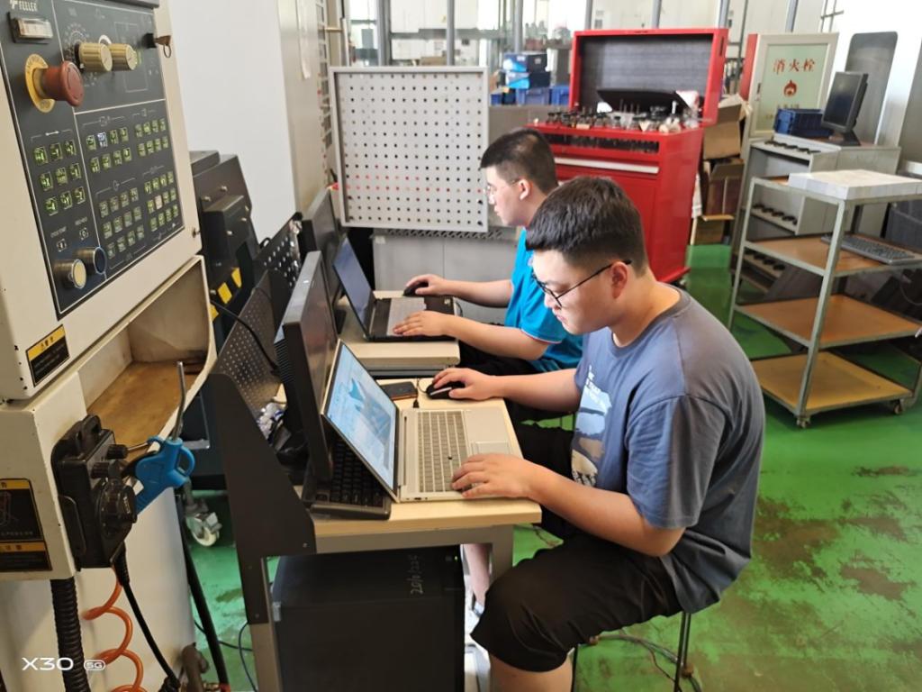 “比赛的进度如何?赛事准备的情况怎么样?压力大不大?”李树岭副校长详细了解学生备战项目的推进计划与安排,询问当前同学们的训练需求和思想状况,并观看同学们实战技能演练。机械工程实训中心刘炜老师也对备赛进行了详细介绍,备赛项目有参加数控多轴加工技术国赛赛项和数字化设计与制造国赛赛项,同时还有数控车床车间和加工中心车间共16名机电学院学生参加暑期集训选拔,为天津市职业院校技能大赛做准备。为了更好的备战各项大赛,学生们克服炎炎夏日带来的各种困难,以满腔的热情、饱满的斗志全心投入到紧张的训练当中。