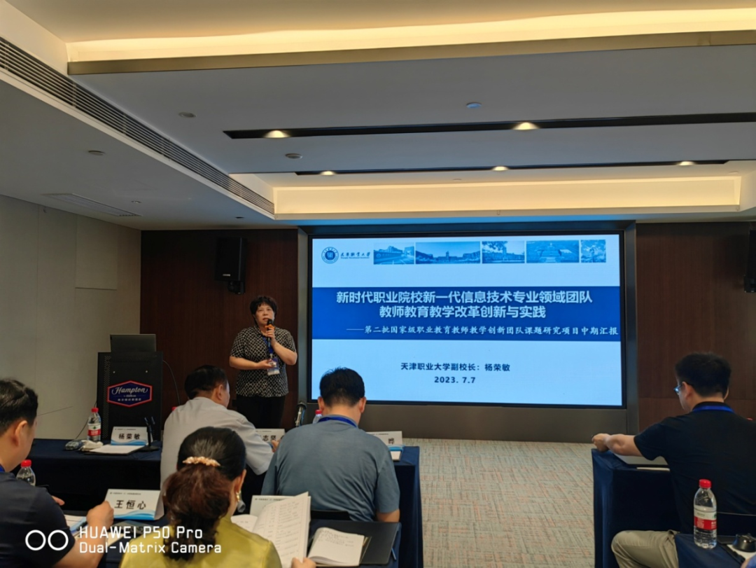 会议上,杨荣敏副校长围绕《新时代职业院校新一代信息技术专业领域团队教师教育教学改革创新与实践》主课题,从机制与制度、建设路径、人才培养方案与模块化课程标准、教学的方法模式 、教学资源建设、质量评价体系等六个维度阐述建设“聚优共研、资源共享、融合共生”创新协作共同体的总体思路与实践以及学校主课题已经取得的建设成果,并围绕推进协作共同体分工协作、组网融通,持续优化完善KY开元教学创新团队建设的组织制度和运行机制,与行业领头企业携手搭建产教融合平台等三方面对职教创新团队主课题后期科研工作进行了规划和部署。