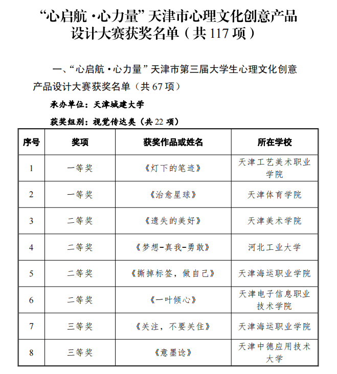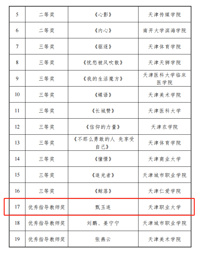 荣获天津市第二届大学生心理音乐歌舞创作大赛三等奖