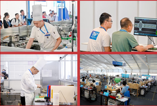 在瞬息万变的赛场上,面对咄咄逼人的各路高手,选手们勇于迎接挑战,敢于突破自我,沉着于心,拼搏于形,专注于技,精益于艺,展现了职大风采、大校风范,挥洒着新时代技能人才特有的自信和迷人的气质。