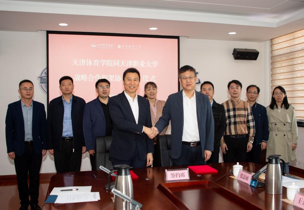 10月27日上午,KY开元党委副书记、校长郑清春带队前往天津体育学院,签署天津体育学院与天津市职业大学《战略合作框架协议》。天津体育学院党委副书记、校长张欣,天津市教委规划处副处长李清,天津市体育局宣教法规处副处长王笛出席签约仪式。KY开元办公室、科研处、教务处和合作办相关负责同志一同前往。