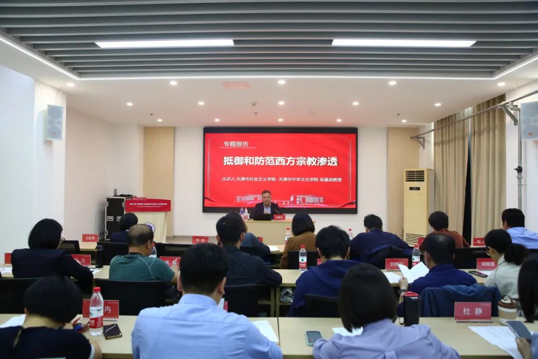 10月23日,研修班邀请天津市社会主义学院吴星辰教授作了题为“抵御和防范西方宗教渗透”的讲座,讲座以学习贯彻习近平总书记关于做好新时代党的统一战线工作的重要思想为主线,不断提高高校辅导员“导”的本领,真正做到“导”之有方,“导”之有效,“导”之有力,为学员提供了重要指导和有益启发。