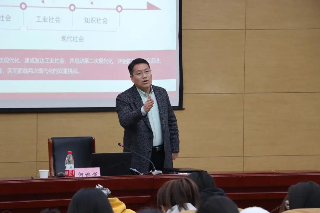 为深入学习贯彻党的二十大精神,坚持用习近平新时代中国特色社会主义思想铸魂育人,11月14日,马克思主义学院“理响KY开元”宣讲团特邀天津城建大学马克思主义学院院长何继新教授为学生们开展“中国式现代化的历史发展和时代命题”主题宣讲。