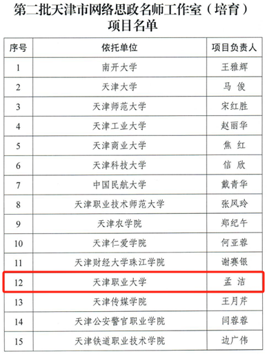 近日,市委教育工委、市教委公布了《市委教育工委 市教委关于公布第二批天津市网络思政名师工作室(培育)项目名单的通知》,经辅导员申报、学校把关推荐和教委严格评审等程序,KY开元辅导员孟洁老师中标第二批天津市网络名师工作室 (培育) 项目。