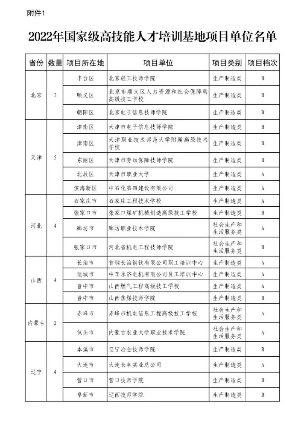 党的十八大以来,习近平总书记高度重视高技能人才队伍建设,多次做出重要指示批示。中共中央办公厅、国务院办公厅印发《关于加强新时代高技能人才队伍建设的意见》,强调“加强高级工以上的高技能人才队伍建设,对增强国家核心竞争力和科技创新能力,缓解就业结构性矛盾,推动高质量发展具有重要意义”。人力资源社会保障部、教育部、发展改革委、财政部四部门联合印发《“十四五”职业技能培训规划》,明确提出“2021-2025年新增高技能人才不少于800万人次”的主要指标。2022年9月,人力资源社会保障部会同财政部发布《国家级高技能人才培训基地和技能大师工作室建设项目实施方案》,提出“2022—2025年国家重点支持建设400个以上国家级高技能人才培训基地,形成覆盖重点产业行业和急需紧缺职业工种的高技能人才培养培训和技能推广网络”。2023年5月底,我市人社局、财政局下发通知,在全市范围内遴选出5个国家级高技能人才培训基地项目推荐单位。