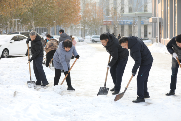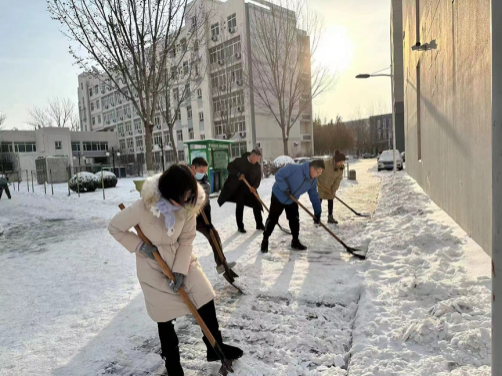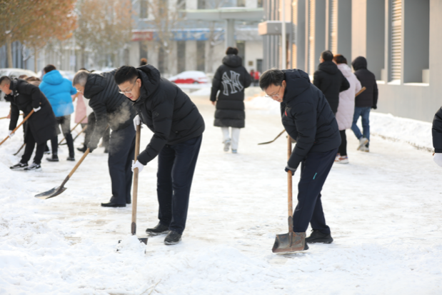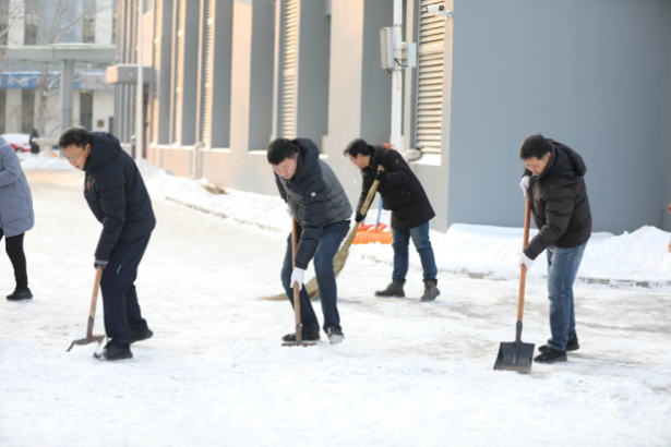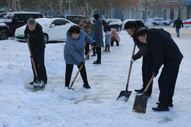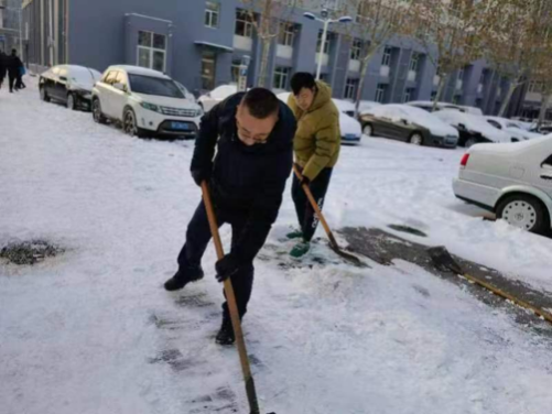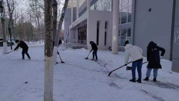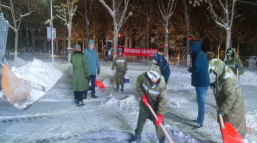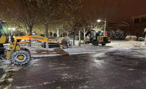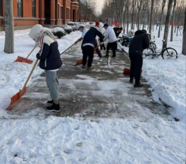 最美下雪天,最暖清雪人。校园物业、绿化等干部职工坚守清雪一线,以最快的速度连夜投入人力机械开展清雪工作。现累计投入16支清雪队伍,260余名学生志愿者,300余名服务外包员工,出动机械车辆3台、运输车辆2台、洒水车辆1台,使用融雪剂8吨。经过师生员工的共同努力,校园清雪作业已初见成效。后勤处将持续寒潮天气变化,开展扫雪除冰工作,做好校园供暖和能源保障工作,全力保障学校教育教学工作平稳有序。(来源:后勤处)