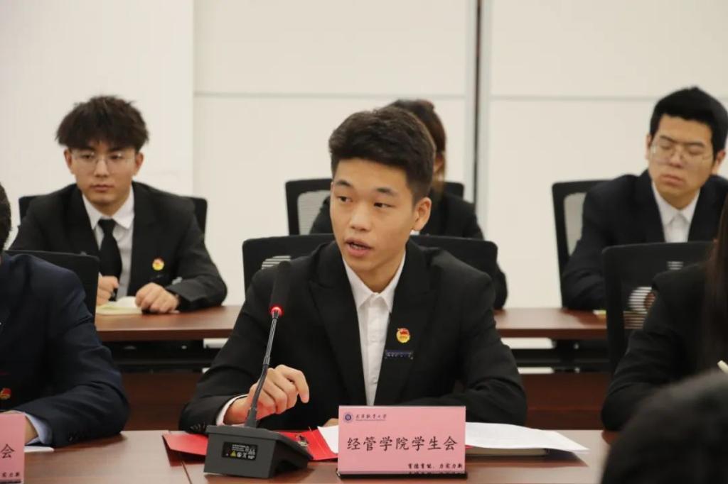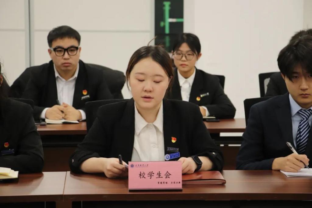 校学生会秘书长就今年校院两级学生会整体的换届情况及学生代表大会的召开情况进行汇报。校学生会、学院学生会新一届主席团成员代表分别汇报了下一步的工作设想,也进行了简单的自我介绍和交流,气氛热烈而融洽,为今后工作的开展打下坚实的基础。
