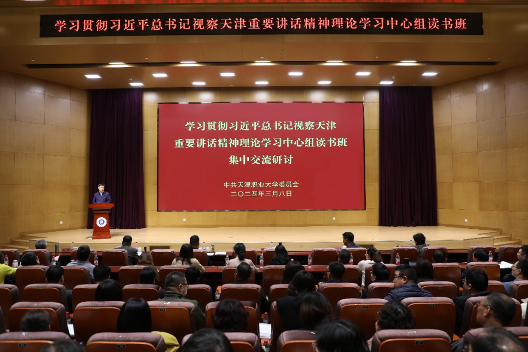此次读书班以集中自学和集中交流研讨的形式开展。3月7日,全体校党委和各基层党委(党总支)理论学习中心组成员利用一天时间,在有着浓厚学习氛围、安静学习环境的图书馆自习区域,集中学习了习近平总书记视察天津重要讲话精神、习近平总书记关于职业教育的重要指示批示精神、2024年天津市教育工作要点和学校2024年党政工作要点等重点内容,大家原汁原味读原文、逐章逐段悟原理,在深化思想认识、坚定信心决心的同时,拓宽了思路视野、明晰了目标任务,更加增强了推动学校事业高质量发展的自觉性、主动性、创造性。