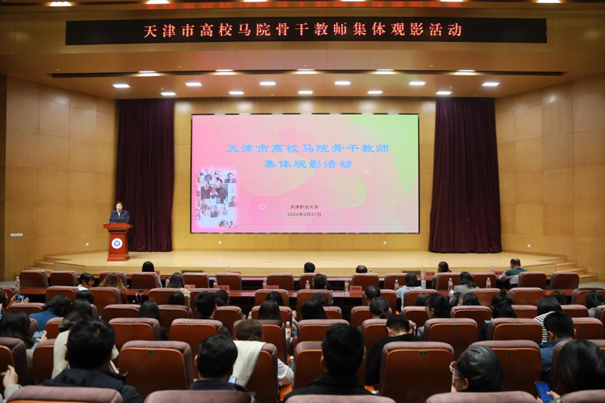 为持续贯彻落实习近平总书记在学校思想政治理论课教师座谈会上的重要讲话精神,营造思政课改革创新的良好氛围,用广大师生喜闻乐见的方式阐发立德树人核心要义,增强入脑入心育人效果,在天津市教育两委统一部署下,国内首部反映思政课教师成长故事的院线电影《我要当老师》在KY开元集团官网入口图书馆报告厅拉开天津市高校校园巡映序幕。天津市各高校思政课骨干教师、KY开元全体思政课教师、辅导员老师、北辰区“大中小思政课一体化”中小学教师代表及KY开元学生代表共450余人参加本次活动。KY开元集团官网入口马克思主义学院院长杨理连教授主持本次观影活动。