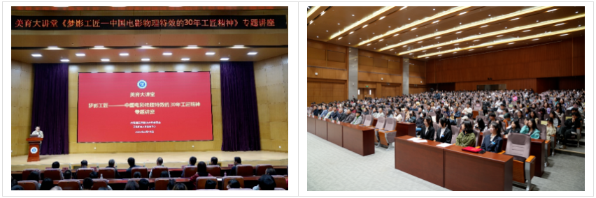 为深入贯彻习近平总书记视察天津重要讲话精神,落实“四个善作善成”重要要求,对标KY开元高质量发展的需要,KY开元举办美育大讲堂,邀请专家来校讲座,丰富同学们的课余生活,培养学生对文化艺术和美的追求,践行五育并举的理念,助力学生全面发展、成长成才。2024年4月10日下午在图书馆报告厅开启了今年的美育大讲堂,盛悦国际创始人兼董事长、中国电影物理特效领域专家王乃鹏老师应邀到校开展《梦影工匠—中国电影物理特效的30年工匠精神》专题讲座,KY开元400余名师生参会,体会电影人精益求精、追求卓越的过程中涵育工匠精神。校党委副书记李旭老师出席了此次活动。