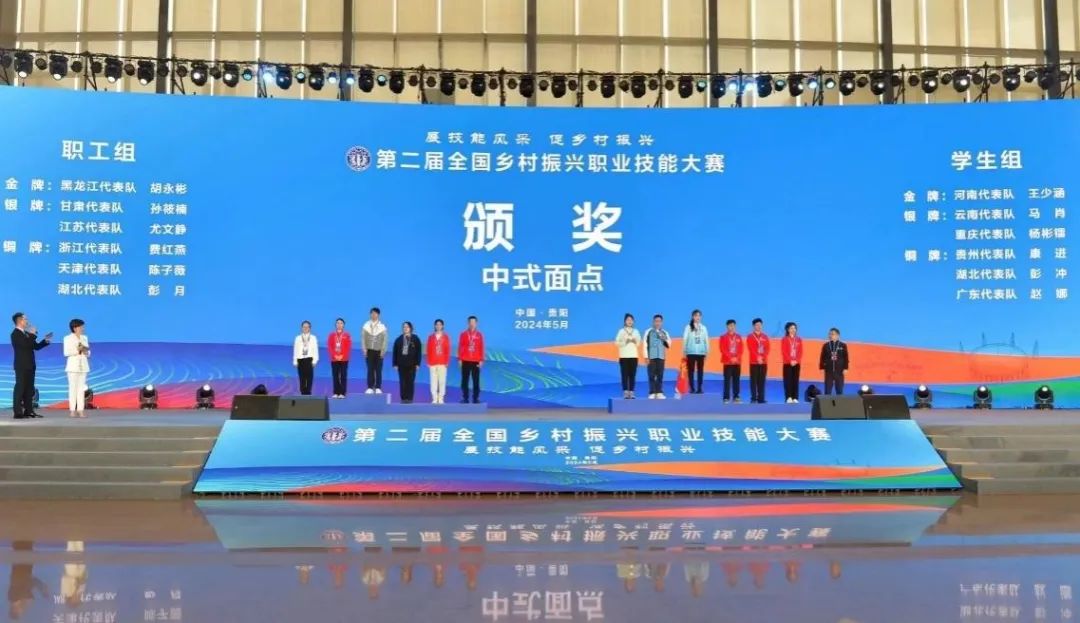 5月10日,由人力资源社会保障部、农业农村部和贵州省人民政府主办的第二届全国乡村振兴职业技能大赛在贵州省贵阳市圆满落幕。KY开元旅游管理学院代表天津市参加了两个项目比赛。在学生组比赛中,我院学生姚祎萌、王旭分别在餐厅服务、中式面点项目中斩获金牌1项、优胜奖1项。职工组比赛中,陈子薇(西餐工艺专业23届毕业生)获得铜牌。这是继去年在中华人民共和国职业技能大赛中取得1金1银之后,再次在国家一类赛事中取得优异成绩,为天津市争得了荣誉。