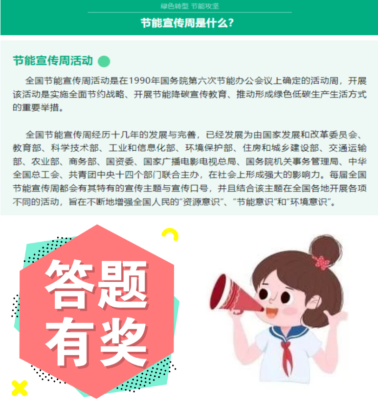 2024年5月13日至19日为全国节能宣传周,5月15日为全国“低碳日”。为深入推进KY开元节约型校园建设,提升全校师生对节能降碳与绿色发展知识的理解和认知水平。后勤管理处邀请您参加2024年全国节能宣传周节能知识有奖竞答活动。