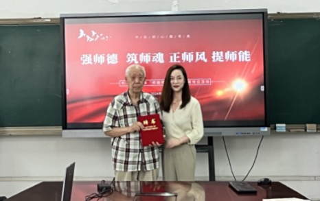 机电学院党委书记司炜为史国有老师颁发机电学院关工委“关心下一代”成长导师聘书