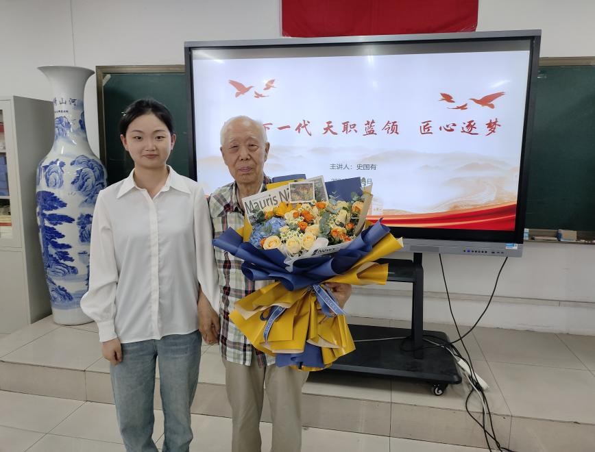 在将近两个小时的精彩讲座中,86岁高龄的史老师全情投入进行分享交流。他以“增强职教意识、担当使命、献身职教事业”为题,通过学习习近平总书记关于教育的重要论述及新《职教法》的心得出发,从“增强职教意识,献身职教事业”“强化自身,做‘四有’好高职教师”“担当使命,做新时代优秀大学生”“寄语祝愿”四个方面,向在座的机电学院师生代表毫无保留地分享了自己教书育人的丰富经历、深刻感悟以及为学、为事、为人的宝贵经验,并从“誓志为师,做四有好老师”,激励青年教师不断提升完善自我,充分发挥自身价值;“挺膺担当,志在大国工匠”,激励青年学子矢志奋斗,争做党和国家需要的高素质技术技能人才。