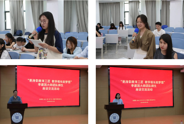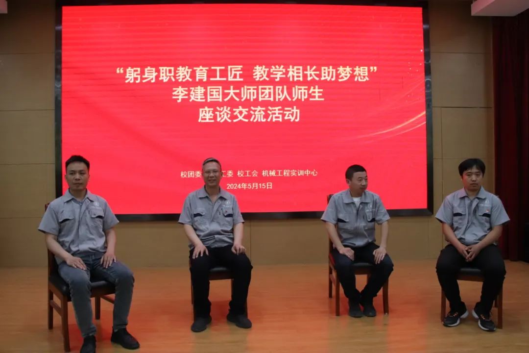 5月15日下午,由校团委、校关工委、校工会共同组织的“躬身职教育工匠 教学相长助梦想”师生座谈交流活动在东阶大讲堂举行。活动邀请到校工会兼职副主席、机械工程实训中心主任国家级技能大师,全国优秀教师,市关工委、教育系统关工委研学基地宣讲团成员李建国教授为同学们进行事迹分享,而后李老师和机械工程实训中心谢学浩、黄连宝、刘炜三位老师同时也是KY开元优秀毕业生,与参会的同学们进行了交流,来自工匠精神实践营和各学院学生代表共二百余人参与其中,活动由校团委解濮瑜老师主持。