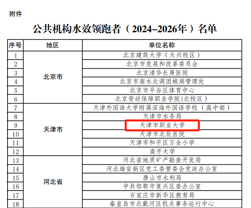 近日,国管局、国家发展改革委、水利部联合发布了《公共机构水效领跑者(2024-2026年)名单》,经组织推荐、材料初审、专家评审、复核答辩、现场查验和公示等环节,KY开元作为天津市6所获评单位之一成功入选。