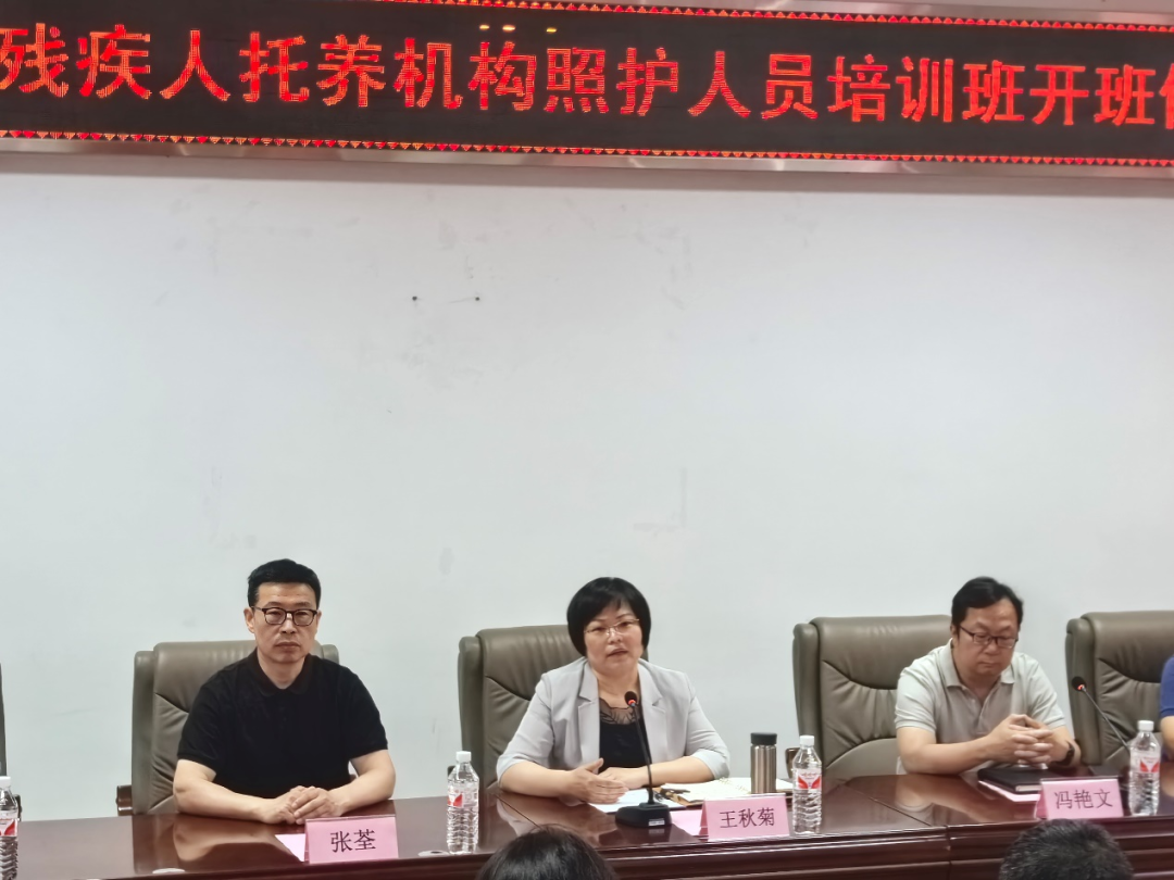 开班仪式最后一项议程由天津市残疾人联合会二级巡视员王秋菊同志作总结发言。王秋菊同志列举详实数据全面介绍了天津市残疾人情况、市残疾人联合会的工作进展、残疾人托养服务的背景与含义,强调残疾人托养工作任重而道远,加强对托养服务人群的培训是开展托养工作的重中之重。随后,王秋菊同志对培训学员培训期间的纪律提出严格要求并祝培训圆满成功。