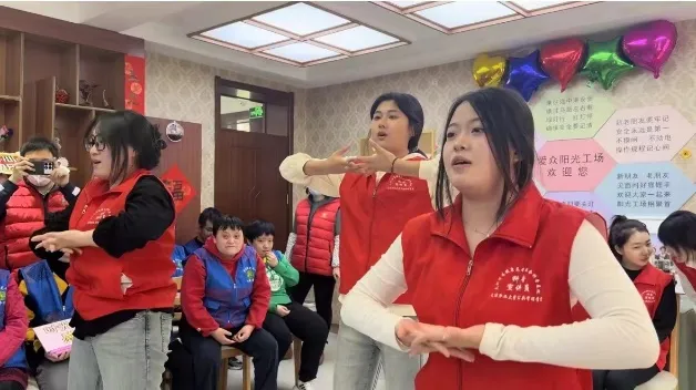 同时,学前教育专业的学生志愿者们也利用自身的专业特长与残疾人同歌同舞。在欢声笑语中志愿者们向残疾人传递了关爱与温暖,而残疾人们也以他们的真诚与活力感染了在场的每一个人,共同营造和谐社会的良好氛围。