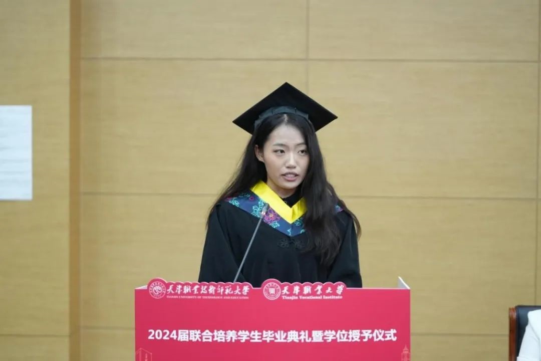 天津市“师德先进个人”、天津市“优秀教师”、天津市“三八红旗手”、天津市“最美女教师”,机电工程与自动化学院张容老师作为教师代表寄语同学们要精益求精,做工作中的担当者;乐于奉献,做社会中的发光者;志存高远,做生活中的奋斗者。