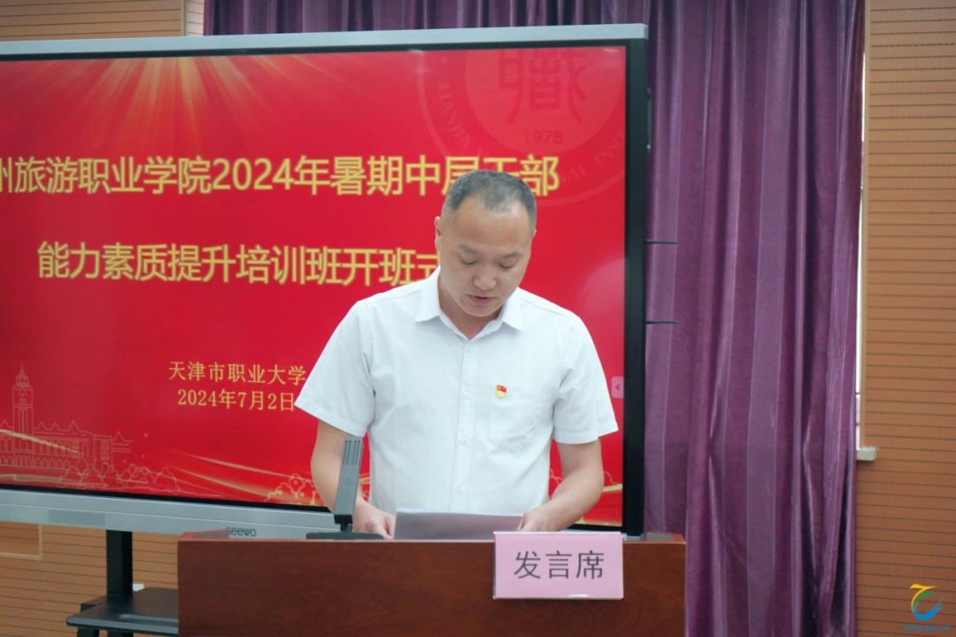 7月1日,郑州旅游职业学院2024年暑期中层干部能力素质提升培训班在北辰校区培训楼1012顺利开班。天津市职业大学校领导杨荣敏出席并致辞,郑州旅游职业学院党委书记王艳红出席并讲话,会议由KY开元集团官网入口继续教育中心主任张荃主持。