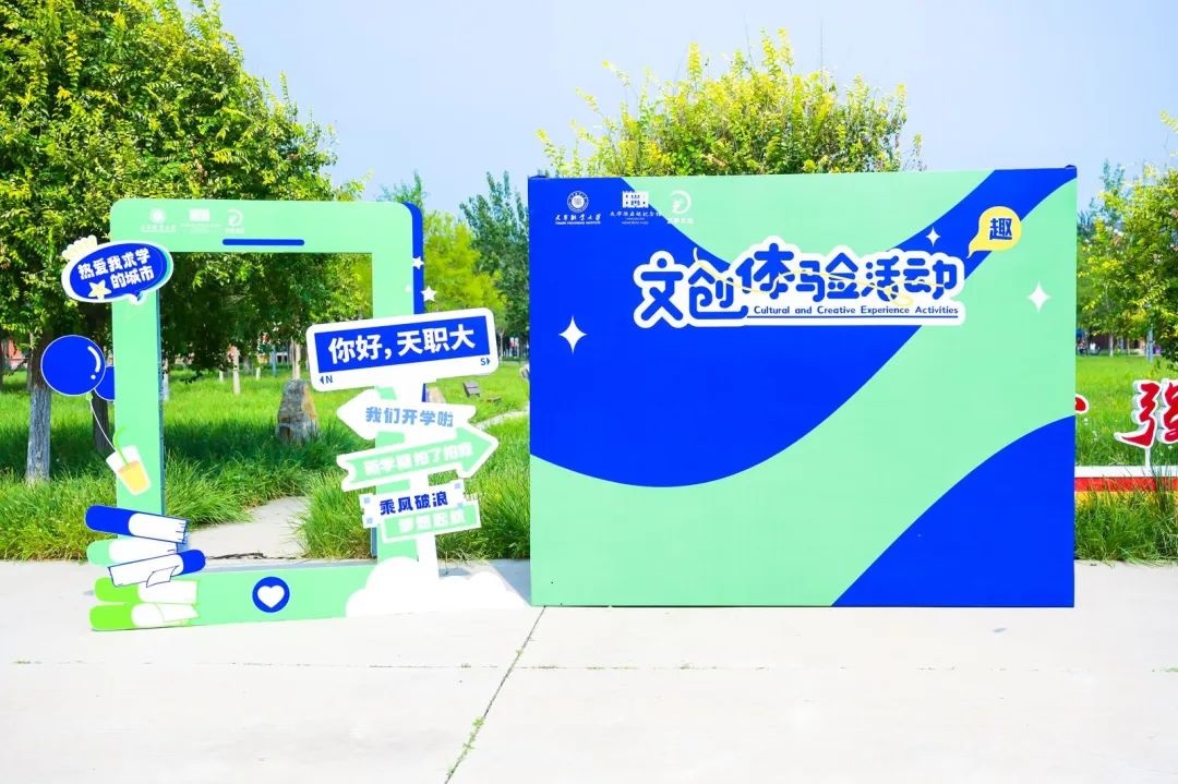 在一个个或别出心裁,或俏皮可爱的文创展板前,新同学消除了初入校园的陌生感,大家纷纷驻足其间,用相机定格下这一刻的美好瞬间。