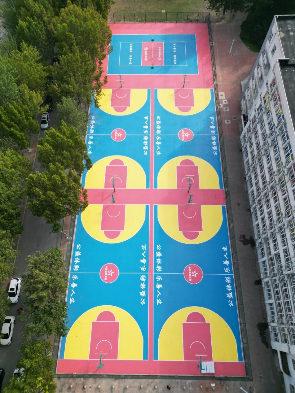 旧球场已使用近20年,因年久老化出现破损且存在安全隐患,学校决定投入资金进行升级改造。同时积极与天津市体育彩票管理中心对接洽谈,由市体彩中心以公益捐赠的形式助力KY开元教育事业发展,为学校铺装4块篮球场和1块排球场的彩色运动地面并提供球场围拢和篮球架、排球柱等体育器材设施。球场面层采用ET超耐磨纤维聚合物铺装,其舒适度、缓震度、耐磨性、以及技术稳定性上都具有一定优势,将为广大师生带来更佳的运动体验。